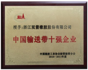 我公司被授予為“2010-2011年度中國輸送帶十強企業(yè)”